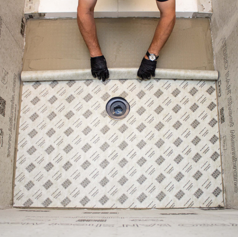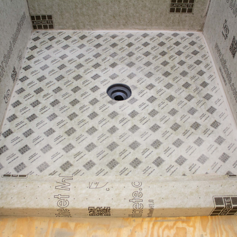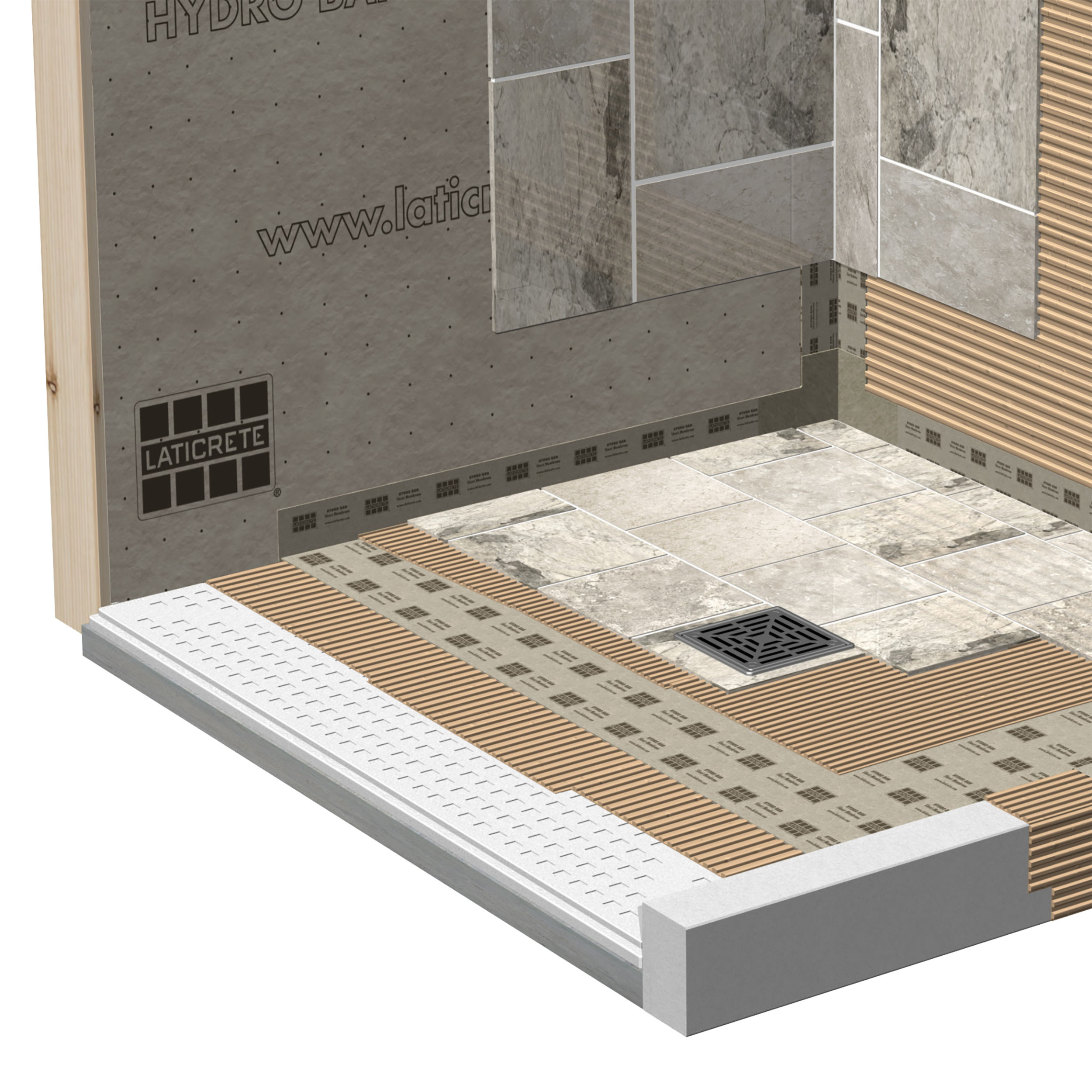 Os colares e cantos preformados são instalados usando um adesivo LATICRETE. Graças à sua estrutura polimérica, a membrana, os colares e os cantos também podem ser usados como barreira de vapor/membrana impermeabilizante para aplicações em saunas e banhos turcos.