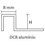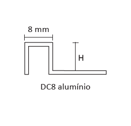 Perfil em Alumínio Anodizado com 8mm de vista e altura variável.  Barras de 2,50m.
