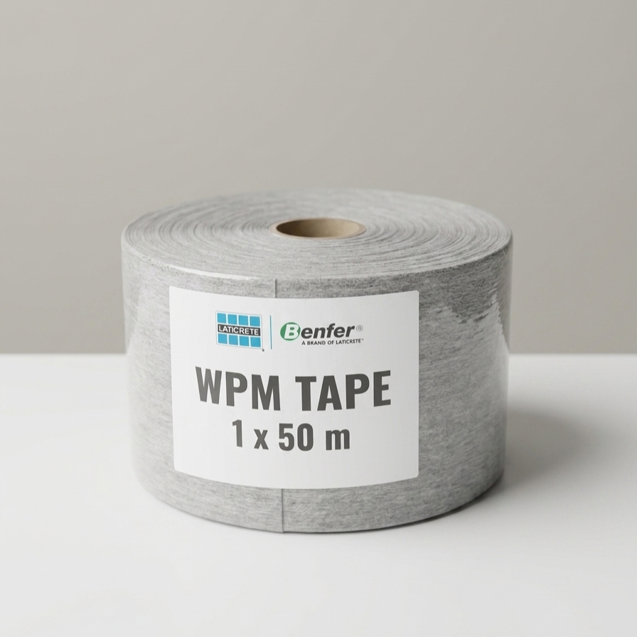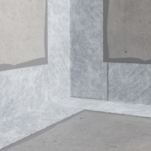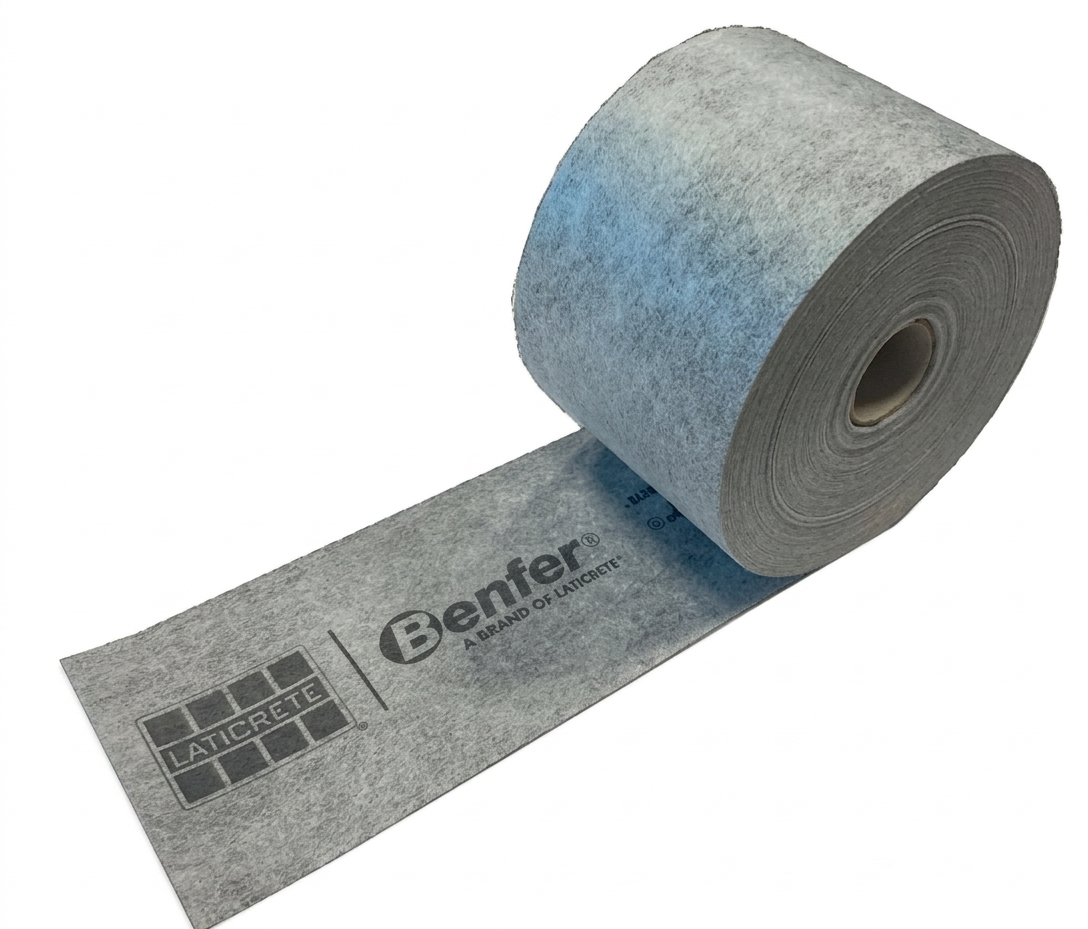 Fita impermeável elástica resistente aos álcalis revestida em ambas as faces por poliéster não tecido para a impermeabilização de juntas de dilatação, juntas perimetrais, bordas e pontos de saída de água nas impermeabilizações sob ladrilhos com membranas AQUA BARRIER.